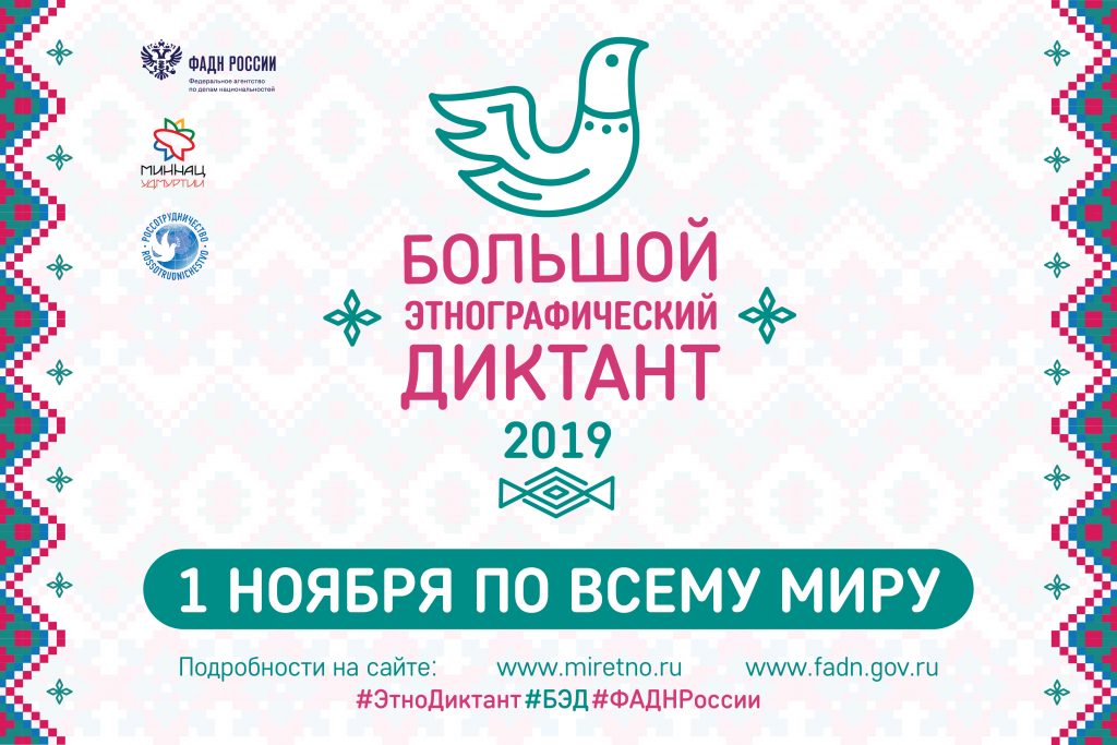 3-8 ноября пройдет Международная акция «Большой этнографический диктант» Большой этнографический диктант — это просветительский проект, который знакомит с культурой народов, проживающих в России, а также позволяет оценить общий уровень этнокультурной грамотности. Организаторы акции — Федеральное агентство по делам национальностей и Министерство национальной политики Удмуртской Республики. Задания Диктанта оформлены в виде теста. Тест состоит из …