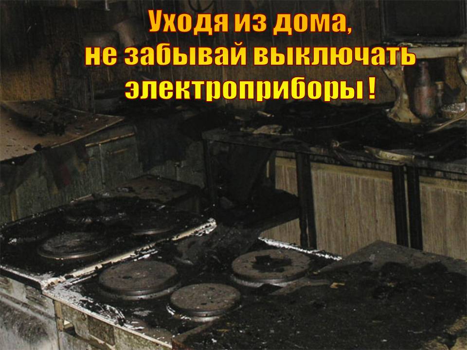 При изучении причин возникновения пожаров в электроустановках жилых домов, необходимо заострить внимание на то, что чаще всего пожары возникают в результате коротких замыканий, перегрузок электросети, искрения и нагрева контактных соединений. Много пожаров возникает при нарушении правил использования бытовых электронагревательных приборов (утюги, чайники, электроплиты и т.д.).При использовании электрического утюга надо помнить, что его рабочая поверхность нагревается до 300° С и ставить его на гладильную доску (стол) без огнеупорной подставки недопустимо. Часто силовой шнур утюга повреждается в месте соединения с утюгом, здесь он подвергается тепловому воздействию от нагретого корпуса и механическом нагрузкам при глажении. Изоляция шнура пересыхает и растрескивается, что создаёт предпосылки для короткого замыкания.