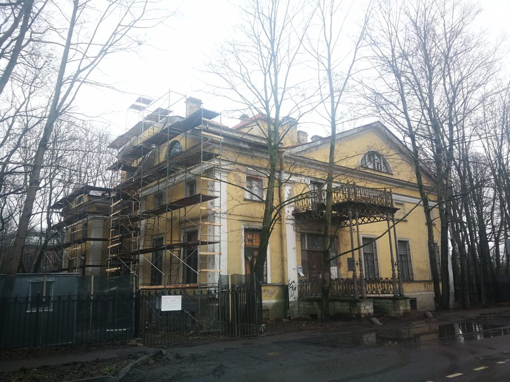 «Получено разрешение от Комитета по государственному контролю, использованию и охране памятников (КГИОП) по проведению противоаварийных работ. В настоящее время активно идет работа по снятию старой штукатурки. Окна и двери закрыты временными конструкциями. Весной 2021 года будет полностью готова кровля, отштукатурены фасады и вставлены окна. Изменения будут большими, и уже к лету усадьба получит приглядный вид.