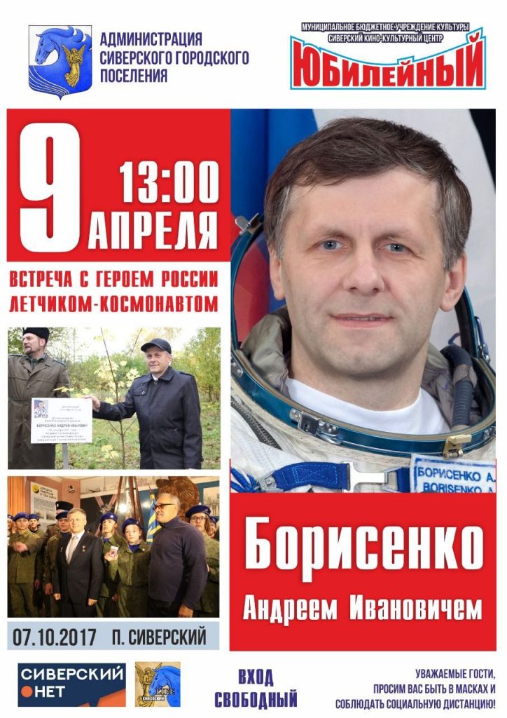 В преддверии Всемирного Дня авиации и космонавтики в Сиверском кино-культурном центре «Юбилейный» с символическим названием «Сиверская космическая» прошла встреча с известным российский лётчиком — космонавтом, Героем Российской Федерации Андреем Ивановичем Борисенко.